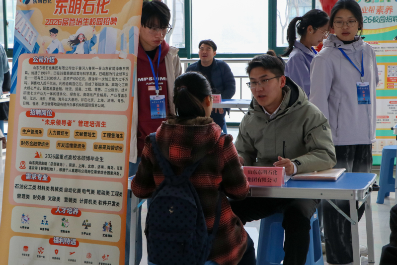 本次专场招聘会采取“线上线下结合、两校区联动”的创新模式,在唐岛湾校区工科楼A座大厅和古镇口校区新能源大厦大厅同步进行。招聘会精准聚焦化工、材料、新能源等相关领域,吸引东明石化、中建安装一公司等二家行业知名企业报名参会,提供涵盖研发、工艺、工程、管理等多个方向的近百个优质岗位,为毕业生提供了丰富选择。
