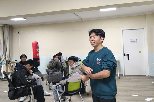 活动前期,徐楠结合班级实际情况,与班委共同研讨确定流程,并准备了“寻人启事”“你画我猜”等环节所需道具。活动中,“寻人启事”环节率先展开,成员们手持写有“来自黑龙江”“有考研规划”“身高178”等具体条件的卡片,在教室内主动走动、相互询问,寻找符合条件的人员并完成签到。该环节促进了成员间的破冰交流,使大家对彼此的兴趣爱好与未来规划有了进一步了解。随后进行的“你画我猜”环节以小组为单位开展,每组轮流选派代表根据所给词语进行绘画,其余组员协作猜词。过程中,各组成员积极沟通、配合默契,现场气氛活跃,有效增强了团队协作意识与集体凝聚力。整场活动组织有序,成员参与热情高涨,各环节均顺利推进。