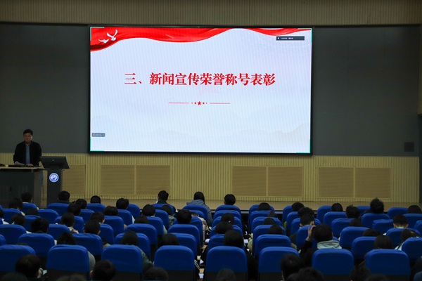 12月8日晚,英国威廉希尔在唐岛湾校区南教100教室举办2025年员工宣传工作推进会暨总结表彰会。公司党委副书记成宏涛、全体辅导员出席会议,本科生全体宣传骨干在现场参会,研究生宣传骨干集中在古镇口校区综合楼210教室线上同步参会。会议由宣传工作指导教师骆浩冉主持。