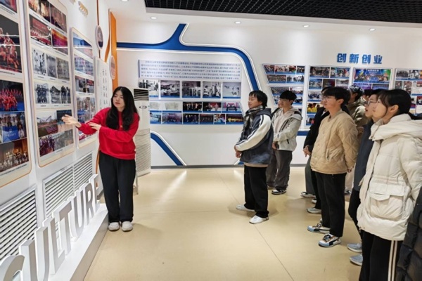讲解员首先介绍了教育基地的整体布局,基地划分为六大主题展区。随后支部成员跟随讲解员进入第一个展区,该展区以历史沿革为主线,通过一系列图文展板和实物档案,勾勒出学校共青团组织自建立以来的发展脉络。在“创新创业”展区,重点展示了学校在“挑战杯”等赛事中取得的优异成绩,支部成员对与智能电网相关的获奖作品表现出浓厚兴趣,他们围在展板前,讨论其中涉及的专业知识。在“社会实践与志愿服务”展区,照片墙再现了学校师生深入油田、奔赴乡村、服务社区的场景。一张张带有泥土气息的实践照片和一件件朴素的志愿服务物品,让参观者感受到这项工作的扎实与厚重。最后参观的是“第二课堂成绩单”展区。讲解员在此处停留时间较长,她系统讲解了“第二课堂成绩单”制度的由来、内容模块、操作流程及学分认定标准。许多支部成员首次全面了解到这一制度的具体细节,他们就学分构成、活动发布等问题向讲解员进行了咨询。