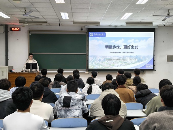 马尉博老师首先结合本研一体化培养的核心特点与实施要求,系统解析了绩点评定与综合测评的具体评价体系,着重强调了学术研究规范与学习过程管理在本研阶段的重要性。他现场分步演示了数字石大平台的各项操作流程,清晰讲解了平台使用中的重点与注意事项,并针对班级日常管理的优化完善,提出了建立精细化制度考核表的具体建议。此外,他还立足校园生活实际,从宿舍安全隐患排查、卫生纪律保持标准及其他员工管理规定等方面,向同学们进行了细致全面的说明。王嘉老师则着重强调了班级凝聚力的培育对于集体发展和个人成长的重要意义,并就即将到来的期末考试备考,向同学们提出要端正学习态度、注重复习实效的核心建议。张子良老师在班会中指出,本研班的学习平台对同学们而言既是难得的机遇,更是需要扛起的责任,同学们需始终保持清醒的自我认知,在扎实提升学业成绩的同时,更要全面打磨思想品德、锤炼综合素养。三位辅导员的指导内容详实具体、贴合班级实际,针对性极强,形成了从学业管理方法到人格培养方向的完整指引体系。