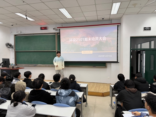 随着期末各科考试的临近,为端正同学们的学习态度,形成良好的考风考纪,环设2501班于12月10日在西环202开展了“笔耕努力书佳绩,心守诚信赴期末”期末考试动员会。本次班会由班长朱政达主持,环设2501班全体同学参加。