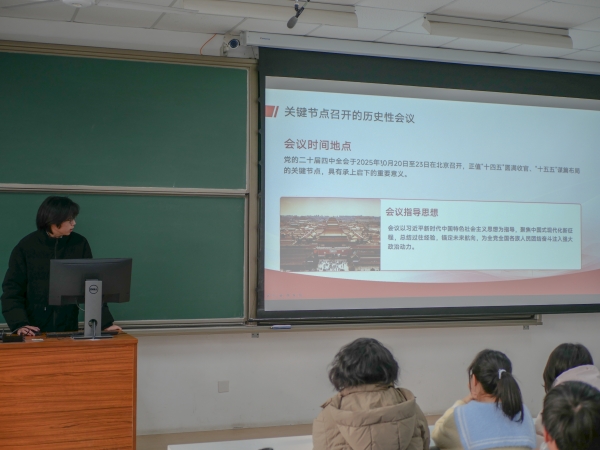 团支书耿南钧简单介绍二十届四中全会 李劲辉摄