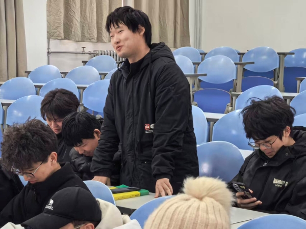 班会围绕阶段性工作概述、自由探讨、班委述职、未来期望四大板块展开。在第一环节,霍庆儒从学业成绩、考勤签到、生活管理、活动参与四个维度进行详细汇报,全面呈现班级近期运行状况,为后续工作优化提供依据。在自由探讨环节,全班同学以“回望过去,勾勒未来”为主题展开交流。大家结合班级建设实际与个人学习生活体验,充分发表意见,最终形成共识:需尽快确立“明确、可衡量”的班级发展目标,为班级整体建设与个人成长提供清晰指引。随后进入班委述职环节。各班委依次结合自身岗位职责,客观汇报本学期以来各项工作的推进情况、取得的成效,同时直面工作中存在的不足与问题,并公开作出承诺。组织委员葛腾予说:“我将以‘有责任、有担当’的工作态度,优化工作方法,提升服务效率,更好地为班级同学提供支持。”班会最后聚焦未来发展规划,明确提出“两强化”要求:其一,强化员工自我驱动能力,倡导同学们主动制定学习计划,合理分配时间,在自主学习实践中提升知识掌握度与问题解决能力;其二,强化人生规划意识,引导同学们结合所学专业特点与个人兴趣方向,提前思考职业发展、升学深造等长期路径,做好生涯规划储备。此外,会议还针对期末备考与假期安排作出提示,要求全体同学集中精力备战期末考试,确保考试顺利,待考试结束后,需科学规划假期生活,做到休息与成长兼顾。
