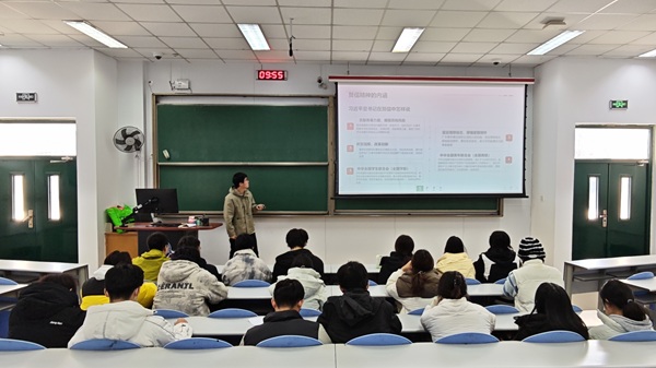 随后,孔宇航围绕习近平总书记关于青年成长、科技创新、能源安全、绿色发展的重要论述,系统解读了习近平总书记重要贺信精神的内涵,并通过贺信精神在科技创新、家国情怀、生态保护、志愿服务、文化传承等方面的实践成果和成就,呼吁同学们立足储能专业特色,深耕专业知识学习,筑牢根基,积极响应国家能源战略需求。