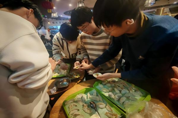 活动伊始,团支部成员提前布置好活动场地,联系食堂工作人员采购新鲜的饺子皮、牛肉胡萝卜等食材。成员们抵达后,迅速分成小组,分工协作展开包饺子行动,成员们各司其职又互帮互助。现场洋溢着互帮互助的温暖氛围,每一个饺子都承载着团员们的创意与心意。随着一锅锅热气腾腾的饺子出锅,香气弥漫整个场地。成员们围坐在一起,品尝着自己亲手包的饺子,畅谈学习生活中的趣事,分享参与活动的感悟。有员工表示:“这是我第一次和同学们一起过冬至、包饺子,不仅学会了新技能,更感受到了团支部这个大家庭的温暖,这种集体团圆的感觉特别珍贵。”
