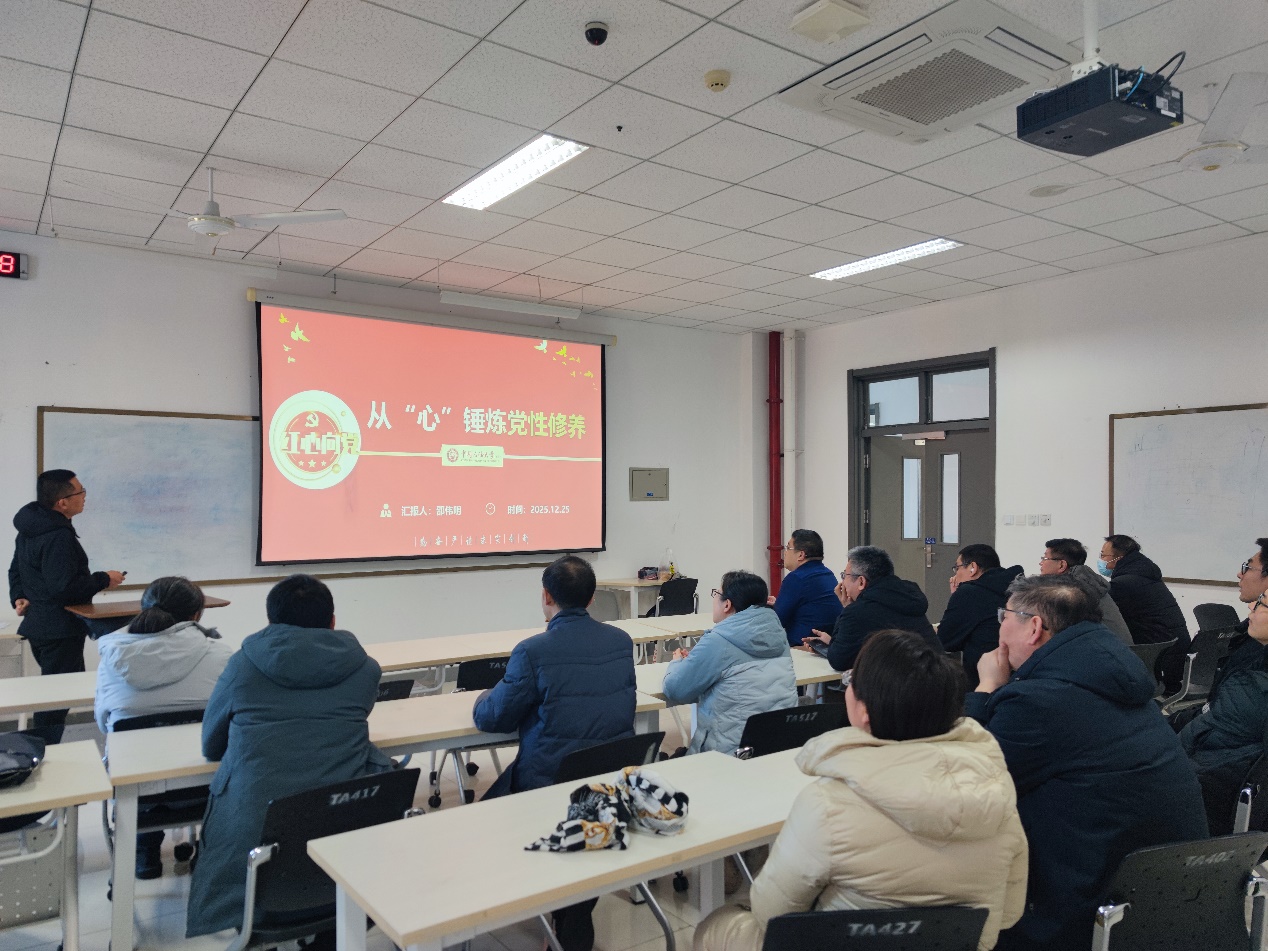 邵伟明老师以“从‘心’锤炼党性修养”为题,围绕习近平总书记关于党性修养的重要论述,从深化于心、内化于魂、转化于行三个层面展开深入讲解。锤炼党性要求我们做到对党忠诚、为民造福、实事求是、廉洁修身。作为高校教师,要把党性修养贯穿于教书育人全过程,以优良师风师德夯实党性根基。作为科研工作者,要将党性修养落实到科研实践之中,以过硬学术作风锤炼党性品格,要立足服务国家能源转型和新能源产业发展大局,在实干担当中彰显党性伟力。