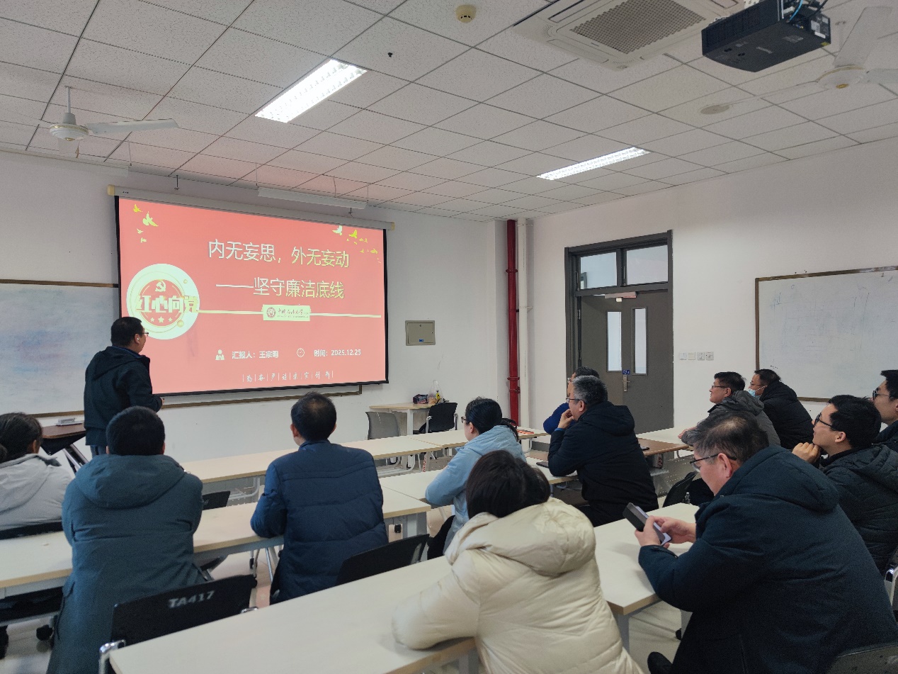 王宗明主讲题为“内无妄思,外无妄动——坚守廉洁底线”微党课