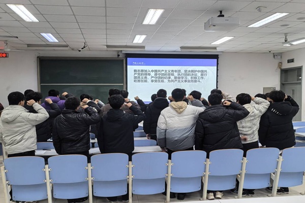 会议伊始,何峻宇进行工作报告,他系统总结了本学期支部在思想引领、学风建设、心理健康教育等方面的重点工作,包括系列主题团日活动、学风建设班会、心理团辅活动等,并对宣传工作情况进行了汇报。接着,何峻宇指出学期初的部分活动在设计上存在形式较为单一、内容吸引力不足等问题,未能充分激发同学的参与热情。认识到这一问题后,他积极听取同学反馈,在后续活动中主动调整思路,并表明以后将继续保持这种自我革新的态度,在活动设计、组织形式上不断优化。马洪喆作指导讲话。他对支部本学期的整体工作成效给予肯定,强调组织生活会是严肃团内政治生活、加强团员教育管理的重要载体,并结合团委工作要求,详细解读了团员教育评议的重要意义、具体流程与评价标准。他希望全体团员珍惜此次互学互鉴的机会,真正达到统一思想、增进团结、共同提高的目的。在民主评议环节,支部成员依次发言,开展批评与自我批评。大家结合自身实际,既认真剖析个人不足,也本着相互帮助、共同进步的原则,坦诚提出批评意见。会议最后,在何峻宇的带领下,全体团员重温入团誓词。