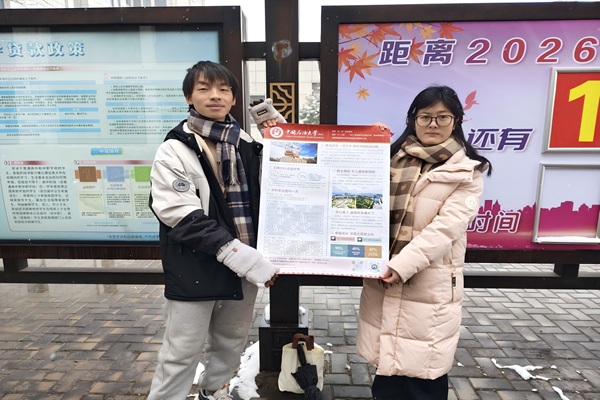 高钰卓和张嘉雯展示学校海报 时念昕摄
