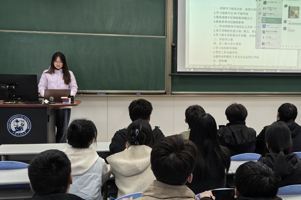 班会伊始,霍庆儒以植树节为开篇,向同学们普及植树造林的生态意义与环保价值,倡导绿色低碳的生活方式,鼓励大家以实际行动守护自然、践行环保责任,在班级中营造爱护环境、共建绿色校园的良好氛围。韩俊伟围绕“学会倾听、培养兴趣爱好”两大核心展开分享。他强调,倾听是高效沟通的基础,希望同学们在学习与生活中耐心倾听、用心交流,在双向沟通中共同进步;同时鼓励同学们在大学期间积极发掘自身特长、培养兴趣爱好,丰富课余生活,提升综合素养,实现学业与个人成长的全面发展。王姝琪聚焦同学们关切的学业与技能提升内容,进行细致讲解与指导。针对学业成绩,分享了高效学习方法与成绩提升技巧,帮助同学们明确学习目标、优化学习规划;围绕综测评定,详细解读了综测评分细则与加分项目,厘清了加分流程与注意事项,为同学们的综测规划提供清晰指引。此外,王姝琪还针对PPT制作与使用技巧进行科普教学,分享了规范排版、内容优化、实用工具等干货,助力同学们提升办公技能,更好地完成课程作业与各类汇报任务。