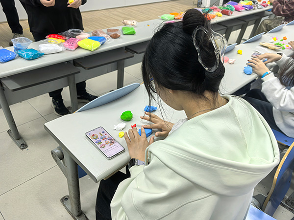 活动前期,员工会成员完成现场布置与创作材料摆放等筹备工作,成员们将超轻粘土、绘画工具等分区整齐陈列,为活动有序开展提供保障。活动伊始,员工会成员向参与同学展示创作示例并明确活动规则、创作要求及注意事项,介绍本次活动以粘土捏制、绘画及书写寄语为主要创作形式,同时强调工具使用安全规范与场地卫生要求,确保活动顺利推进。随后,同学们有序领取材料进入自主创作环节,部分同学围坐,结伴交流思路,分享配色技巧;部分同学独立构思制作,专注勾勒草图,轻捏粘土。现场既有轻声探讨的温馨,也有静心创作的专注,秩序井然。创作过程中,员工会成员穿梭在桌椅间,及时解答同学疑问、协助调整作品细节。活动尾声,成员收集优秀作品并分类摆放在教室前方展示区,供全体参与者观摩交流,搭建起交流互鉴的平台。